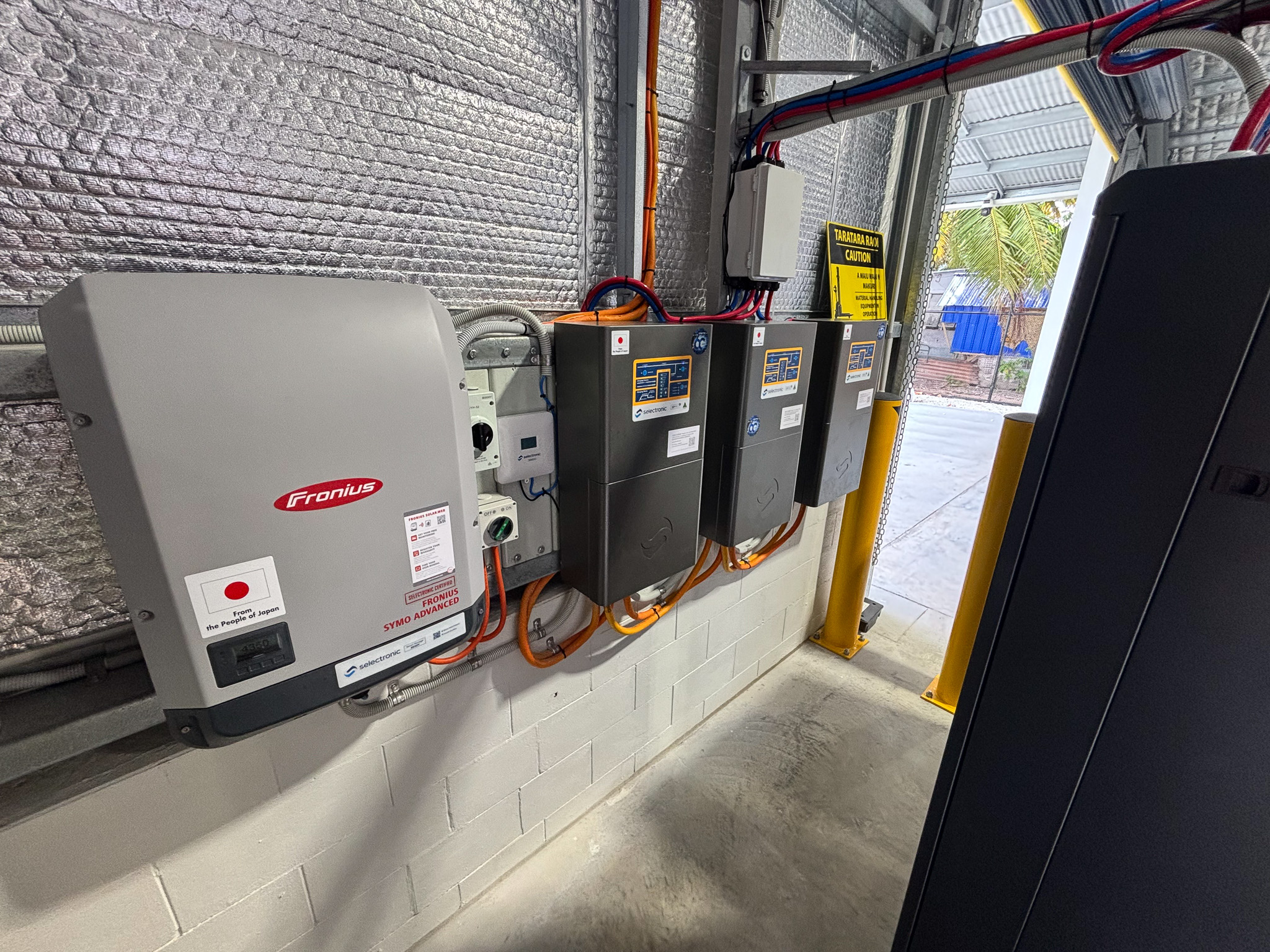 Design and installation of an Australian-made solar and battery backup system installed in the Kiribati Humanitarian Warehouse, including 12.9kw of solar panels and 136kwh of battery backup.